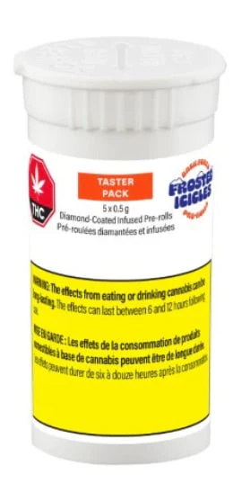 Back Forty's Frosted Icicles are distillate and diamond infused pre-rolls coated in a layer of THCA diamonds, boosted with botanical terpenes and flavouring agents for the perfect blend of potency, aroma, and flavour in expertly rolled cones. This Taster Pack brings five bold flavors together in one lineup: Strawberry Pink, Peach Lemonade, Sour Cherry, White Freeze, and Iced Grape.