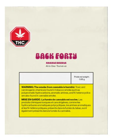 This all-in-one vape hardware is designed to put the Back Forty in the palm of your hand. With a 0.95g fill, compact design, and rechargeable battery, its the perfect balance between function and format. Razzle Dazzle brings an indica-dominant blend of tart raspberry and sweet vanilla derived from a combination of high-quality distillate, botanical terpenes, and flavouring agents, delivering a flavour medley thats berry hard to resist.