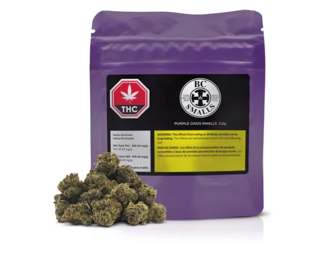 Purple Oasis, dropped by BC Smalls in a tidy 3.5g bag, this sativa-dominant cross of Oasis and Purple Urkle blends juicy berry sweetness with floral and candy-grape notes, underpinned by a soft earthiness. Compact, colourful, and proudly grown in BC, with the small-batch care youd expect from BC Smalls.