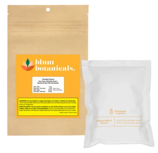 Smell the tropics with this bath bomb containing 50mg of CBD and the fruity terpenes of Pineapple Express. This bath bomb transforms your soak into a mini vacation with bright, tropical aromas of pineapple and citrus. Designed for sustainability, it comes in a water-soluble pouch and compostable packaging for an eco-conscious way to bathe. A perfect choice for those seeking a zero-waste bath experience with eco-cert botanicals that act fast and last long.