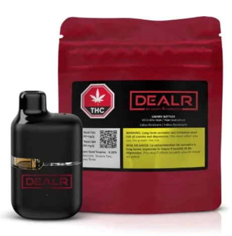 Crack open Cherry Bottles, the indica-dominant all-in-one for those who savour taste without making a scene. From Cherry Cookies and Zkittles BX1, sweet cherry flavouring pours over crisp cola fizz for a candy-soda hit that’s smooth from start to finish. Powered by a plant-based cannabis formulation and enhanced with natural terpenes, Cherry Bottles delivers flavour-packed pulls in a rechargeable device with a USB-C port.