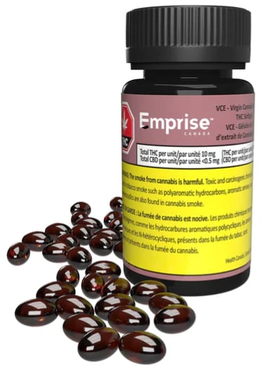 Virgin Cannabis Extract THC Softgels are a THC-dominant formulation. Each softgel delivers 10 mg full spectrum THC cannabis oil in a discrete dosage form, with all the added benefits of phytonutrients. They are manufactured with THC cannabis oil and coconut-derived MCT oil. Each bottle contains 30 softgels (300 mg total THC).