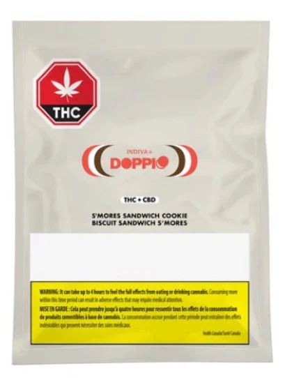 Indiva Doppio sandwich cookies are a cannabis-infused twist on a timeless snack. Each S'mores cookie contains 10mg THC and 10mg CBD. One cookie per pack. Available for a limited time only!