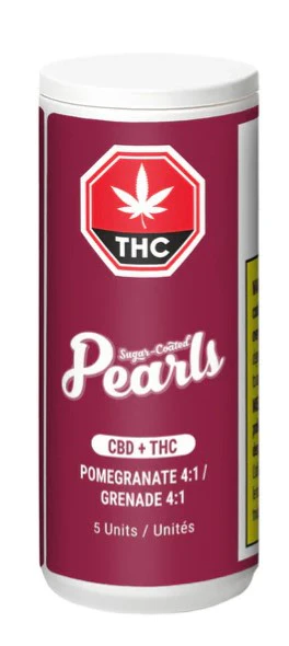 Pomegranate Pearls are infused with CBD and THC in a 4:1 ratio. Each sugar-coated pearl contains 8 mg of CBD and 2 mg of THC. Pearls are bursting with natural flavour and coated in sugar for a sweet treat with a total of five gummies per pack.