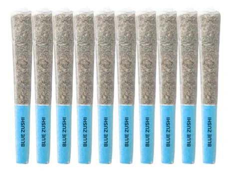Blue Zushi 10x0.5g pre-rolls are packed with expertly milled whole flower and hand-finished with a Dutch crown. This Zkittlez and Kush Mintz cross delivers bold gassy aromatics with sweet tropical undertones, offering a smooth, full-bodied smoking experience in a convenient multi-pack.