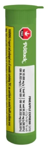 Pineapple Express is a sativa-dominant classic known for its citrus, earthy, and pine aromas. Dominant in Myrcene, Caryophyllene, and Pinene terpenes. The Potluck single-strain pre-roll lets you indulge in your favourite strain in a convenient half-gram tube.