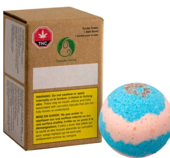 This bomb features loads of soothing, moisturizing mango butter and a relaxing blend of lavender, frankincense, and chamomile aromas. Each fizzy sphere is double-infused, with a balanced blend of 100mg of THC and 100mg of CBD per bomb. As always, Stewart Farms bath bombs are handcrafted and free from drying alcohols or synthetic fragrances and packaged in biodegradable shrinkwrap and a child-resistant carton.