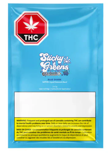 Welcome to Sticky Greens take on Blue Shark like youve never seen before. Theyve blended the tangy taste of blue raspberry with THC distillate and infused this mix with flavourful botanical terpenes and high-potency liquid diamonds for an extra bite.
