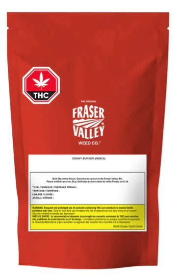 Donny Burger is deliciously savoury, pungent and gassy think grilled cheese and dark garlic in a bulk bag. This high-THC indica is a cross of GMO and Han Solo Burger. An ounce of dense green buds and tufts of orange hairs, Donny Burgers unmistakeable bud is greenhouse grown in BCs Fraser Valley.