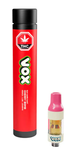 Sweet, juicy cherry explodes on impact. Plug in and turn up—Vox 1.2g 510 carts are heavy-hitters! Featuring triple-distilled distillate and boosted botanical terpenes for flavour that hits ultra loud. Dominant terpenes include limonene, myrcene, and beta-caryophyllene.