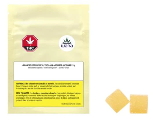 Wana Japanese Citrus Yuzu 2:1 Sour Gummies combine hints of distinct acidity and unique sweetness. Created with vegan and gluten-free ingredients, each gummy is infused with 10mg CBD and 5mg THC terpene-enhanced distillate creates a 2:1 CBD/THC ratio.