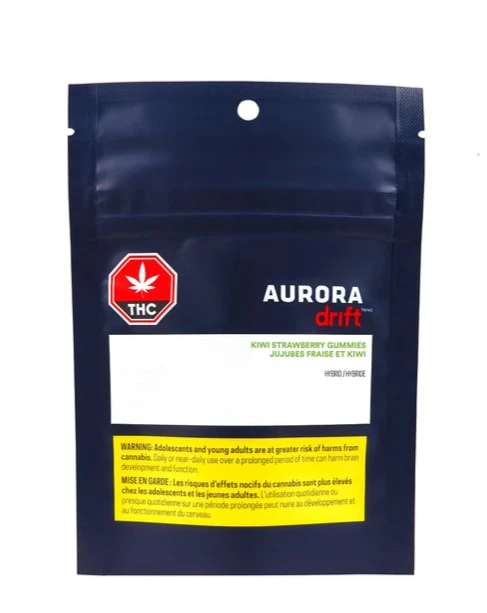 Aurora Drift Kiwi Strawberry Gummies are chewy, fruity treats made with all-natural flavours and no artificial sweeteners. Each bite-sized gummy is infused with 5 mg THC and 5 mg CBD of full spectrum extract from our balanced hybrid strains.