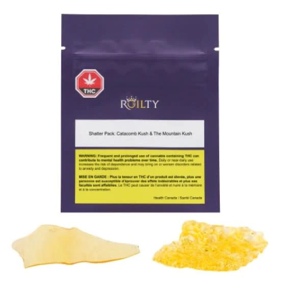 Roilty offers this shatter pack duo of their highest potency BHO concentrates, made carefully for optimum terpene to THC ratio. It includes Catacomb Kush (made from Death Bubba) and The Mountain Kush (Afghani Kush) shatter. With 70%+ THC, this small-batch extract duo-pack offer Roiltys best-selling shatters in one place!