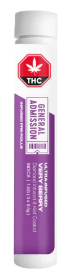 Very bright, very bold, Very Berry. Sweet and juicy and a bunch of berry flavour. G.A.s Very Berry is infused with diamonds to crank up the potency. You read that right. DIAMONDS. G.A. Ultra-Infused Pre-Rolls are made using milled whole flower, dusted in premium kief, boosted with botanical terpenes, and infused with diamonds and THCA isolate to deliver their most potent pre-roll yet.