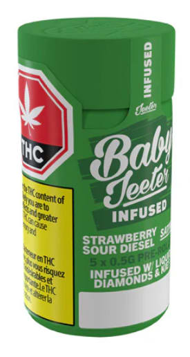 Get ready, Canada! Jeeter is making its grand debut in the Great White North. Baby Jeeters promise a flavour experience that's anything but small. Every meticulously crafted pre-roll is infused with diamonds and botanical terpenes, crowned with a layer of kief and charged with a burst of unparalleled flavour. Embrace the best, Canada. Jeeter has landed. Uniting Strawberry Cough and Sour Diesel, two exceptional sativas, the vivacious Strawberry Sour Diesel fuses strawberry notes with a diesel kick. The delectable sweetness of ripe strawberries accompanies each puff, only to be contrasted moments later by a zesty, pine tang thats denoted with a diesel finish.