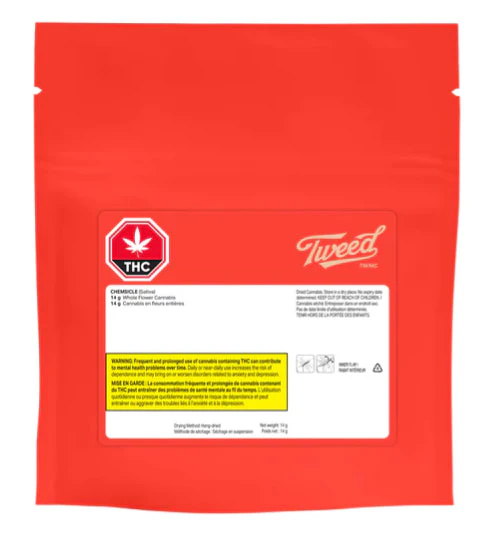 Tweed Chemsicle is a sativa-dominant strain with high THC and minimal amounts of CBD. Its creamy, spicy, and earthy flavour notes derive from its 91K and Chemdawg lineage. Dominant terpenes include Myrcene, Pinene, and Ocimene.